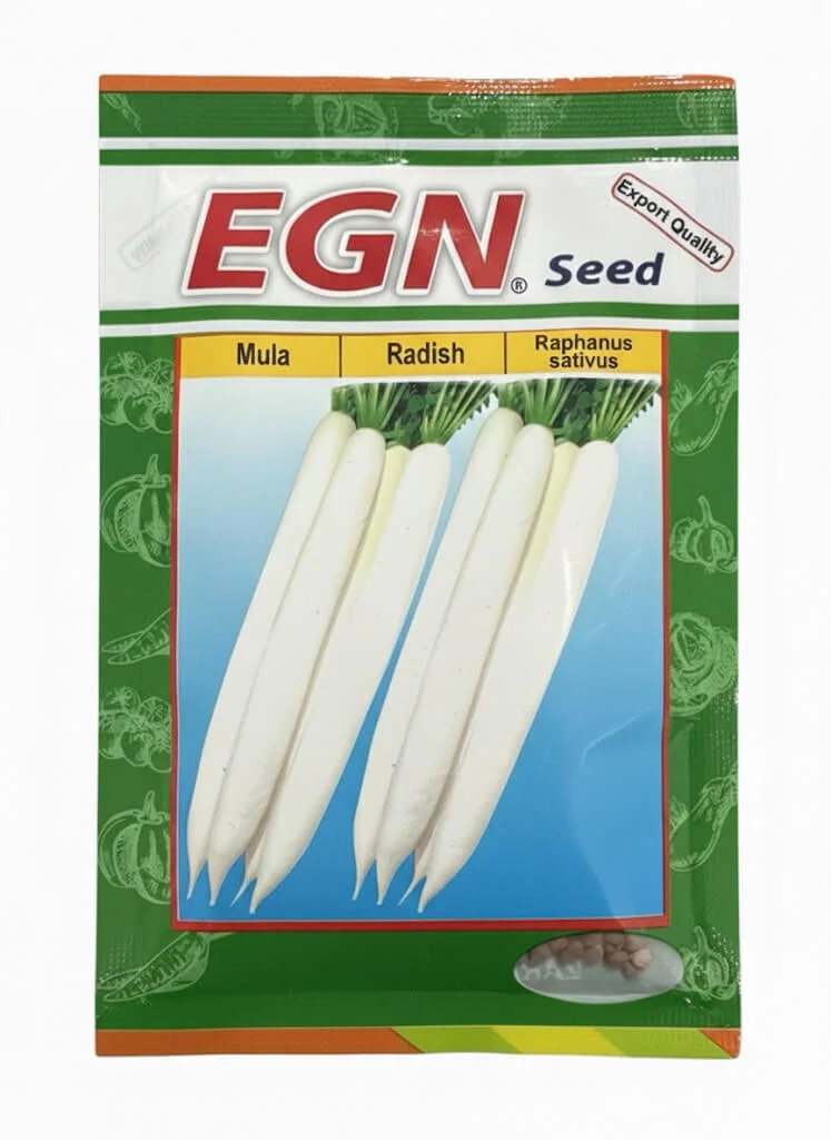 Grow your own fresh, crisp, and pure white Radishes at home! This packet contains Export Quality seeds for cultivating the long, cylindrical white radish, known as Mula in South Asian languages.