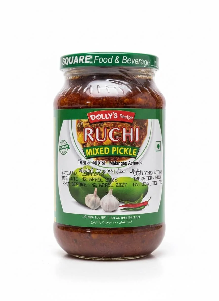 Handcrafted following a time-honored recipe (Dolly’s Recipe), our mixed pickle features premium ingredients like juicy Mango (40%), pungent Ginger, hot Green Chili, and aromatic spices, all preserved in rich Soybean Oil. The result is a vibrant, intensely flavored pickle that adds a transformative kick to any meal.