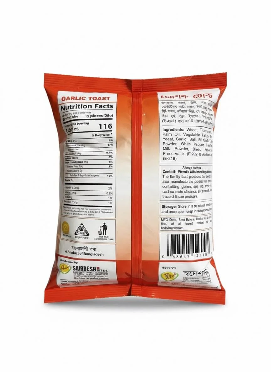 Enjoy the savory crunch of Export Quality Garlic Toast. Crispy, flavorful snack or perfect accompaniment to tea (Chai). A product of Bangladesh, ideal for dipping and snacking.
